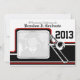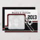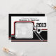 Varsity Stripe com convite de Festa de formatura Trombone com foto realçada em vermelho. Personalizar para qualquer licenciatura, universidade ou segundo grau. Altere o texto para o ajustado das suas necessidades. Adicionar informações ao convite de retorno também.