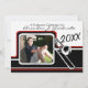 Varsity Stripe com convite de Festa de formatura Trombone com foto realçada em vermelho. Personalizar para qualquer licenciatura, universidade ou segundo grau. Altere o texto para o ajustado das suas necessidades. Adicionar informações ao convite de retorno também.