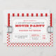 Convide todos a sua noite de cinema do aniversário com este convite do divertimento projetado como um bilhete da admissão do filme. Bilhete branco, com texto em vermelho e em preto com as bolinhas vermelhas do divertimento e padrões listrados em uma luz - fundo cinzento. Também disponível em uma variedade de esquemas de cores adicionais.