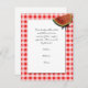 Este convite divertido tem um fundo de tablete vermelho e branco que lembra verões antigos. No canto superior esquerdo há uma fatia de melancia sendo transportada por uma formiga. Seu texto personalizável está centrado em um centro branco. Este é um convite ideal para um piquenique, reunião familiar, churrasco, evento de Dia do Memorial, ou para terminar a temporada de verão no Dia do Trabalho.