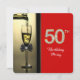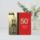 Vidro de champanhe preto e dourado 50º convite de aniversário. Estes belos diamantes e o convite de aniversário vermelho-ouro 50º são facilmente personalizados para o seu evento. Você pode escolher o estilo da fonte, a cor e o texto, bem como alterar a cor do plano de fundo.