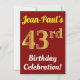 Este design convite de aniversário apresenta uma mensagem como "A 43ª Celebração de Aniversário de Jean-Paul!", onde o nome pode ser personalizado, e onde o número "43º" tem uma aparência falsa de ouro. Ele também apresenta um fundo de cor vermelha. Os detalhes do evento no verso podem ser personalizados. Poderia ser usado para convidar pessoas para a festa ou festa de aniversário de alguém do 43º aniversário. [~Z0000120]