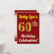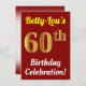 Este design convite de aniversário apresenta uma mensagem como "Betty-Lou's 60th Birthday Celebration!", onde o nome pode ser personalizado, e onde o número "60º" tem uma aparência falsa de ouro. Ele também apresenta um fundo de cor vermelha. Os detalhes do evento no verso podem ser personalizados. Poderia ser usado para convidar pessoas para a festa de sexagésimo aniversário ou festa de aniversário de alguém. [~Z0000120]