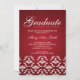 design de "Festa de formatura" elegante com o Damask em fundo vermelho, nome personalizado e texto de detalhes. Imprima a sua família e amigos com este na moda e o design moderno. Totalmente personalizável! Fácil de usar e fácil de personalizar. Faça o pedido hoje!