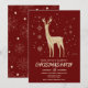 Este Simples e escuro vermelho festivo e ouro elegante design do festival de natal Deer apresenta uma Reindeer cercada por um belo conjunto de flocos de neve e estrelas. O verso do convite é um padrão festivo das mesmas ilustrações de Natal. Você pode personalizar a cor de fundo. Esta design é perfeita para uma festa de Natal. Você pode personalizar todos os detalhes do seu evento. Veja toda a coleção correspondente!