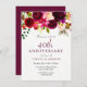 Convites Vermelho Rubi Floral Borgonha 40º Aniversário de C