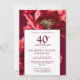 Convites Vermelho Rubi Moderno e Floral Dourado de 40º Aniv