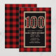 Convites de Aniversário de 100 anos Vermelho Rústico Preto Plaid Búfalo 100º