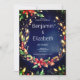 Este elegante e festivo convite para o casamento de inverno e Natal é perfeito para o feriado. Ele retrata vermelhos, azuis marinho e flores verdes de aquarela em um fundo de marinho azul de gradiente de aquarela. Este design de flor de inverno é perfeito para eventos de moda e na moda. Design com sua mensagem e informações. Todas as designs são impressas.