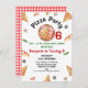 Verde Vermelho moderno Qualquer Pizza Idade Festa Aniversário Pizza Convite à Pizza Temia qualquer convite à idade de aniversário com várias fatias de pizza, cogumelos, manjericão e mais, assim como uma fatia grande, guardanapo e conselho de madeira. Ideal para a festa de aniversário de pizza de uma criança.