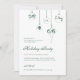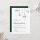 Ornamentos bálidos de monograma verde de inverno, convite para festas de férias com letra elegante. Designs de ornamento em branco com monograma verde pendurado. Personalize com seus nomes iniciais e informações de sua parte na fonte de script verde e na letra de serif. Berry vermelho para trás. Projetado para combinar com nossa coleção de monogramas verdes de Natal de inverno.