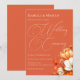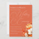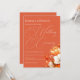 Convide seus convidados para compartilhar a magia do seu dia especial com este belo convite para o casamento. Com um rico e quente fundo de terracota, esta design capta o sentimento romântico e vibrante da estética de Verona Sunset. Os elegantes arranjos florais em branco e cor d'água laranja criam um contraste espantoso, fazer este convite perfeito para um casamento de destino, uma cerimônia ao ar livre, ou qualquer casal que pretenda dar um tom quente, convidativo e sofisticado.