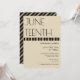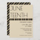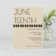 Um convite vertical para uma comemoração de 12 de junho. O convite é castanho bronzeado e preto com letras negras. Personalize o texto, adicione este convite ao seu carrinho e comemore a liberdade, os ancestrais e o progresso a seguir.