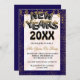 Comemore o Ano Novo com este elegante convite de festas de ouro, preto e azul escuro, mude o texto para o que você quiser quando solicitar