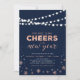 Comemore o primeiro dia do novo ano com este convite de festas de véspera de Ano Novo moderno. Esta design apresenta a tipografia "Saúde ao novo ano", falso falso falso floco de neve de rosa e luzes de cordas sobre um fundo azul marinho. Você pode personalizar o texto e a cor do plano de fundo.