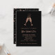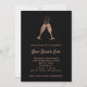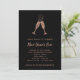 Estes Convites de festas de Véspera de na moda de Ano Novo exibem óculos de champanhe de ouro, falso rosa, brindando com bolhas festivas, sobre um fundo preto dramático. A parte de trás do convite está decorada com confete correspondente. A forma perfeita de celebrar o Ano Novo em estilo!
