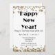 Um Convite de festas branco de véspera de ano novo com um design de brilho dourado impresso e seus detalhes familiares que você pode personalizar para fazer seu próprio. Edite usando o editor de texto para adicionar seus próprios detalhes. Este é um convite elegante para uma festa de Ano Novo ou celebração para se juntar aos seus amigos. Disponível em cópias impressas ou como um download digital após você personalizá-lo.