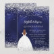 Um convite moderno, na moda e glamouroso para uma Quinceañera, festa de aniversário 15. Um fundo azul marinho com brilho sujo, brilhos, uma garota vestindo um vestido de bola. A cor azul é irregular. O nome é escrito com um moderno estilo escrito à mão. Personalize e adicione os detalhes da sua festa.