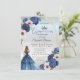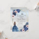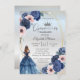 Tara brilhante prateada, vestido azul-aquarela e quadro floral em fundo prateado. Divirta-se na sua festa da quinceañera com este convite elegante. Convide seus convidados para levantar um copo e se unir à diversão com estes convites festivos.