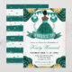 Este convite para festa de Sweet Sixteen apresenta uma princesa de pele escura usando um vestido azul turquesa brilhante, cercada por rosas, balões e detalhes dourados cintilantes. A rica paleta azul turquesa e a ilustração de uma princesa de contos de fadas criam uma atmosfera luxuosa e mágica, enquanto os acentos florais e cintilantes adicionam um toque de elegância. Perfeito para celebrar este marco único com um visual feminino, encantador e refinado.