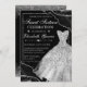 Vestido branco de aquarela e brilho preto e prateado agitado design com fundo preto