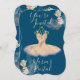 Lindo vestido de bailarina rosa e dourado com garrafa de perfume com padrão de flores "Infundido com amor" fundo azul-marinho personalizado e acentos rosa-peach. Personalize para sua ocasião especial. Recital de Dança, Aniversário, Quinceanera, Menina, Pré-adolescente, Chá de Bebê ou seu Evento especial.