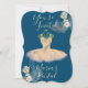 Lindo vestido de bailarina rosa bege macio e tule dourado e frasco de perfume com padrão de flores "Infundido com amor" fundo azul navy personalizado e acentos rosa peach. Personalize para sua ocasião especial. Recital de Dança, Aniversário, Quinceanera, Bebê Menina, Pré-adolescente, Chás de Bebê ou seu Evento especial.