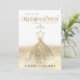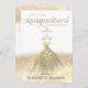 Vestido adorável, charmoso de ouro, espumante, convite da Quinceañera.
