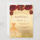 Um convite moderno, na moda e glamouroso para uma doce festa de aniversário 16, 16. Um fundo de ouro falso com pó de ouro falso, um vestido e rosas vermelhas, florais. O nome é escrito com um moderno estilo escrito à mão. Personalize e adicione os detalhes da sua festa.
