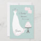 Vestido, bolo e flores brancos elegantes de casamento (em um chá de panela ciano fraco pálido do fundo do damasco de água-marinha pálida)