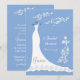 Vestido de casamento branco elegante, flor de primavera e rosas em um Chá de panela de fundo azul