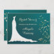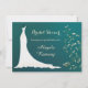 Vestido de casamento, flores estilizadas de sino, folhas de ornamentado e caules sobre um fundo ciano escuro