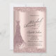 Elegante e sofisticado brilho na borda, e vestido de diamantes rosa dourado em fundo rosa dourado. O design é fácil de personalizar com sua própria palavra e seus convidados ficarão emocionais quando virem esses convites fabulosos.