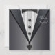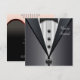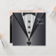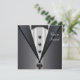 Tuxedo preto de gravata na frente com costas de vestido preto, convite para festa e evento formal de gravata preta.