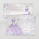 Cartão de RSVP de quinceañera elegante da PixDezines com vestido rosa-acinzentado com glitter, borboletas rosa-ouro e rosa-acinzentado, ervilhas-de-cheiro lilases rosa-acinzentadas. Fundo iridescente com filtros para ajuste de tom. Todos os elementos são editáveis.