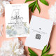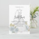 Este design apresenta um chá de panela com um design de flores azuis, cor d'água, com estilo azul elegante, com um roteiro de caligrafia elegante e vestido clássico de casamento