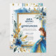 Belo convite da Quinceanera BlueGold Floral.