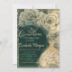 Dourada tiara, vestido, rosas e diamantes em um fundo verde.