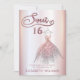 Vestido encantador, rosa de ouro, doce 16 convite.
