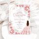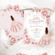 O convite para comemoração de Quinceanera, cor-de-rosa, rosa e branco. Apresenta uma garota morena em vestidos de vestido de bola, fonte de script, borboletas de ouro de rosa, rosas de aquarela e tiara. Perfeito para uma elegante celebração de glam estilo princesa. Personalize com seus próprios detalhes. Impressos convites Zazzle ou modelo de impressão digital instantânea para download.