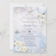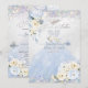 PixDezines aguarela em azul gelo e flores de rosa bege, holográfico confete Sweet 16, e vestido de noiva com glitter em azul poeira e fundo de platina clara iridescente (veja os filtros para mudar o tom) e confete. Todos os elementos são editáveis.