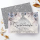 Convite moderno de Quinceañera floral. Design com vestido prateado, elementos florais em um fundo pérola brilhante. Personalize ainda mais com os detalhes da sua festa na frente.