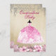 Convites Vestido Rosa, Dourado, Glitter Quinceanera Convide