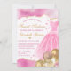 Convites Vestido rosa e balões Dourados de brilho Doce 16