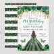 Celebre um aniversário especial com estilo com este convite elegante que apresenta uma princesa de pele escura em um lindo vestido verde escuro. Rodeada por flores lindas e borboletas delicadas, este design emana sofisticação e charme. Perfeito para uma celebração de aniversário mágica, captura a essência da graça e da beleza, tornando-o ideal para quem procura um convite de aniversário único e personalizado. Defina o tom para um evento inesquecível com este convite encantador e elegante.