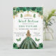 Celebre um mágico Sweet Sixteen com este convite encantador, apresentando uma princesa loira com um lindo vestido verde escuro. Rodeado por flores suaves e borboletas delicadas, este design emana elegância e charme. Perfeito para marcar este aniversário marcante, ele define o tom para uma celebração sofisticada e inesquecível. Se você está organizando uma reunião elegante ou uma grande festa, este convite oferece um toque estiloso e personalizado para o seu Sweet Sixteen.