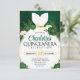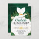 Prepare-se para ser cativado por este convite cativante de Quinceañera Verde Esmeralda Floral Branco Princesa! Este design encantador gira com a rica elegância do verde esmeralda, adornado com delicados motivos florais brancos e uma silhueta de um vestido de princesa branco fluído, criando um convite inesquecível para a sua mágica celebração de quinceañera.