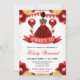 Este convite de Sweet Sixteen apresenta uma princesa de pele escura em um vestido vermelho brilhante cercada por rosas, balões e detalhes dourados cintilantes. A rica paleta vermelha e a ilustração de princesa de conto de fadas criam uma atmosfera luxuosa e mágica, enquanto os acentos florais e cintilantes adicionam um toque de elegância. Perfeito para celebrar este marco único com um clima feminino, encantador e refinado.
