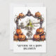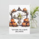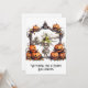 Um pano de fundo de nuvens e abóboras laranja vibrantes. No centro de tudo, há uma bruxa fofa com um chapéu pontiagudo e um olhar malicioso de vazio que é mais doce do que assustador. As abóboras estão bem arrumadas ao seu redor, entalhadas com rostos amigáveis lançando uma luz suave e tremenda no seu mundo mágico.
