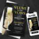 Celebre a noiva a ser com um chá de panela chic e elegante! Este convite sofisticado apresenta uma ilustração aquosa de uma mão segurando um copo de champanhe, contra um fundo preto e dourado glamouroso. Perfeito para um chá temático "Veuve Before Vows" (Veuve Before Vows Antes de Vows), este convite é para dar o tom de uma fabulosa celebração.